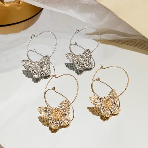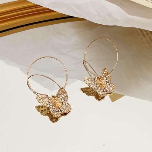 Fairy Butterfly Hoop Earrings Full Bling Crystal Butterfly Dangle Earrings Sparkling Rhinestone Butterfly Earirngs Large Circle Hoop Earirngs 6