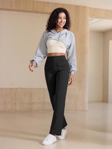 More information about keriffe Women's Straight Leg Pants High Waisted Button Stretchy Business Work Casual Trousers Multiple Pockets