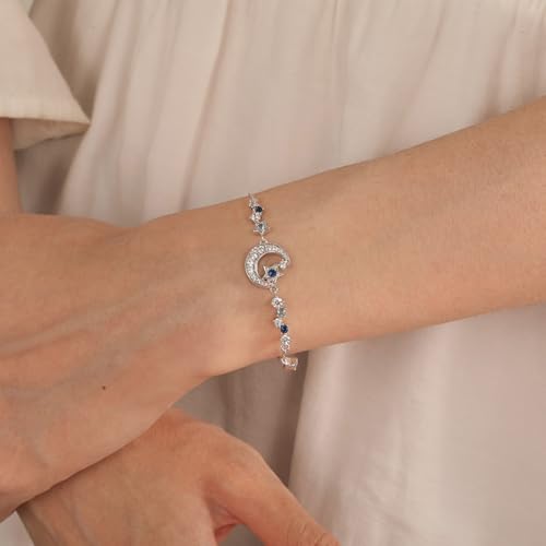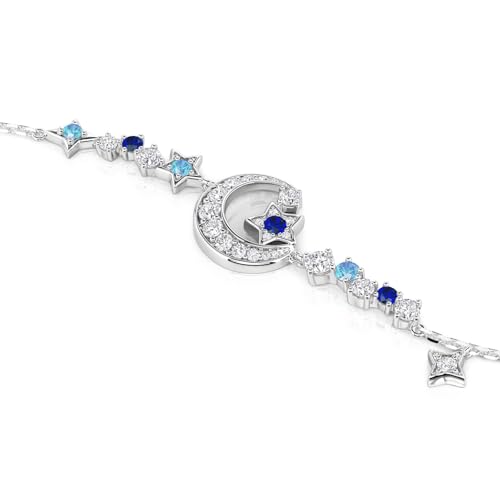 HOT ! Jeulia Luna Astra Moon and Star Tennis Bracelet for Women | Sparkling CZ Bling Blue Celestial Charms | 925 Sterling Silver Adjustable Slider Chain | Gift Box Included