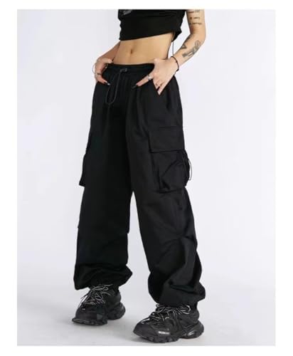 HOT ! Baggy Parachute Cargo Pants Y2K Drawstring Casual Pants Pocket Design Beam Feet Trousers Loose Fit Pants