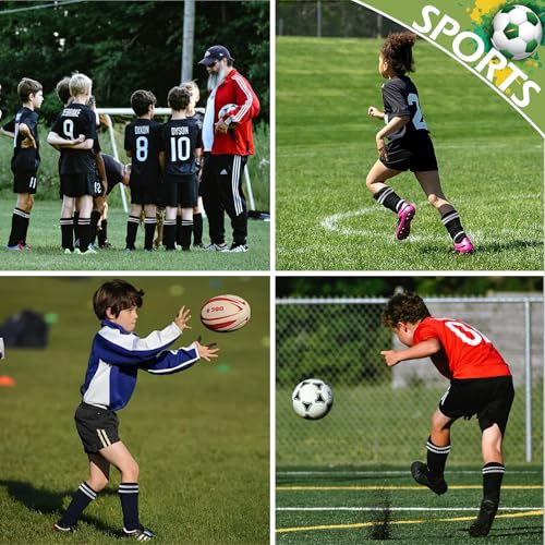 • Comfortable Knee-High Socks: Made with super-soft, breathable fabric that feels gentle on kids’ sensitive skin. The stretchy ribbed cuffs hug legs securely without tightness, keeping soccer socks in place even during fast runs or kicks.Reinforced stitching ensures long-lasting wear, perfect for active kids