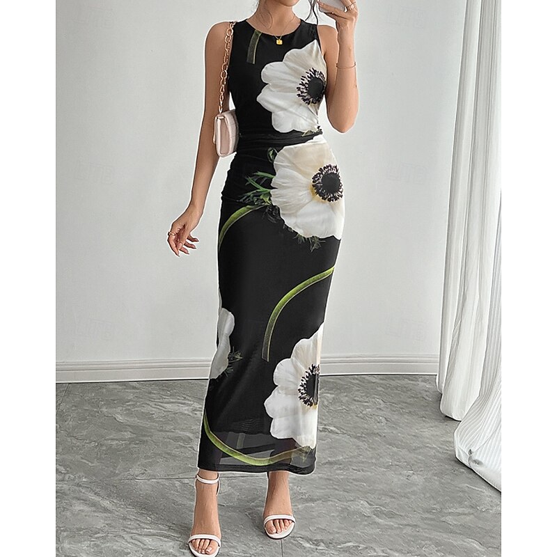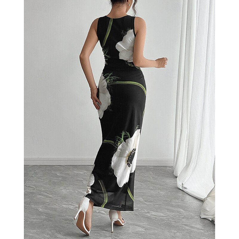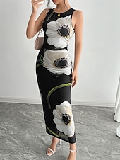 More information about Women's Midi Dress Floral Dress Print Dress Fashion Modern Outdoor Holiday Going out Regular Fit Flower Sleeveless Crew Neck Black Fall