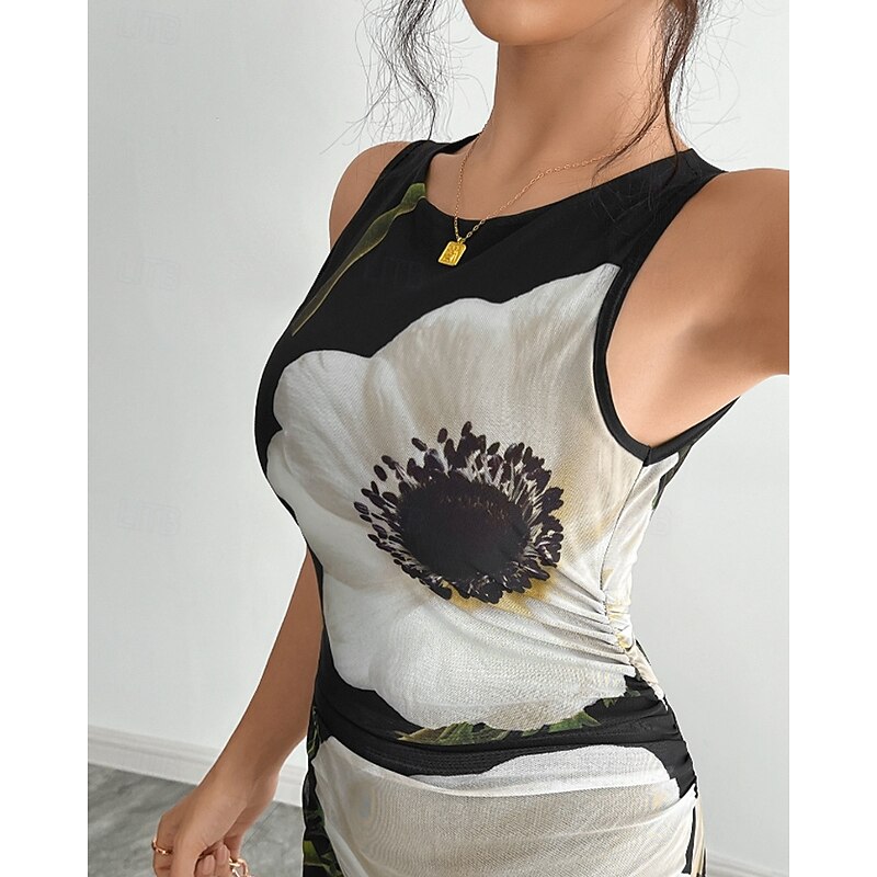 Women's Midi Dress Floral Dress Print Dress Fashion Modern Outdoor Holiday Going out Regular Fit Flower Sleeveless Crew Neck Black Fall 10