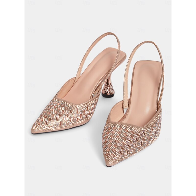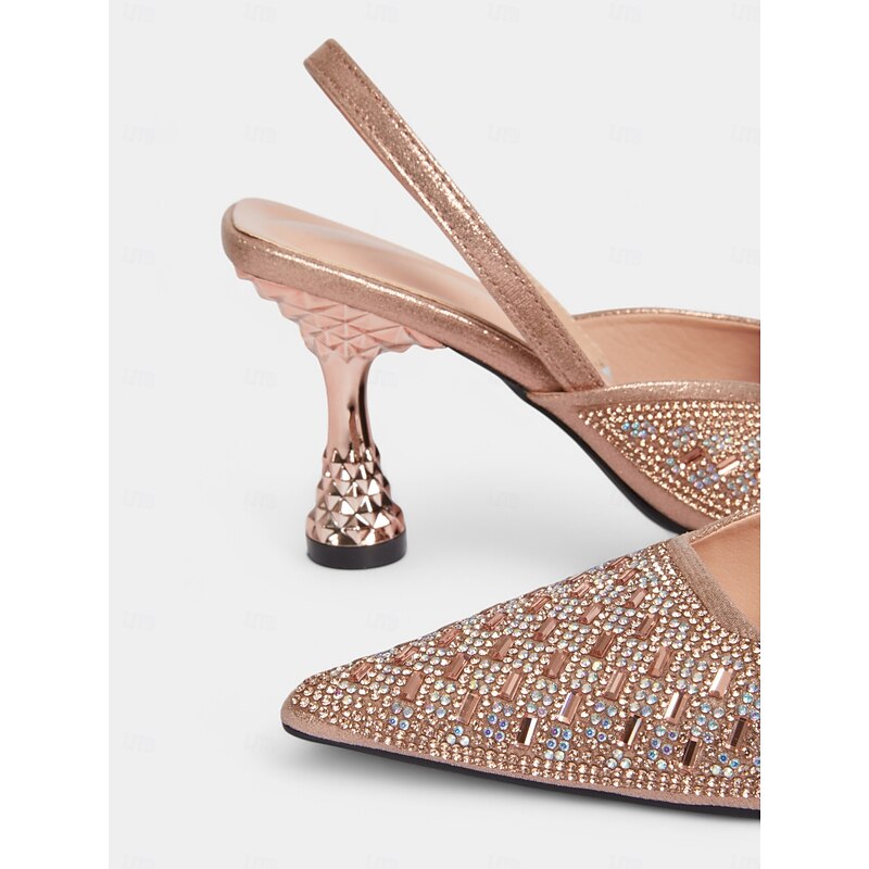 HOT ! Women's Rose Gold Rhinestone Slingback Heels with Geometric Heel – Luxury Evening & Date Night Shoes