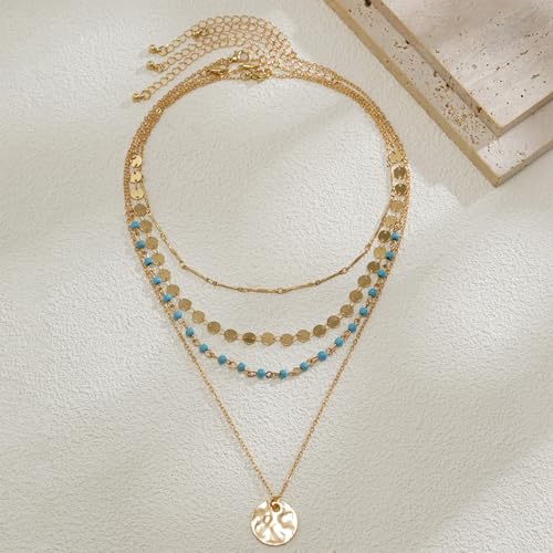 HOT ! Layered Boho Necklaces for Women Gold Coin Pendant Necklaces Stackable Turquoise Choker Necklace for Women Western Jewelry