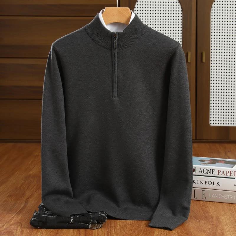 Men's Merino Wool Sweater Men Half-High Collar Pullover Business Casual Half Zipper Tops 4