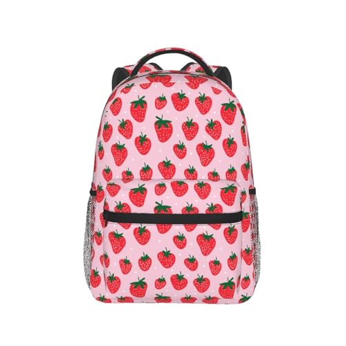 HOT ! Strawberry Strawberry Leaves Backpack Large Capacity Lightweight Casual Travel Sports Backpack 11.4X7.8X15.7 inch