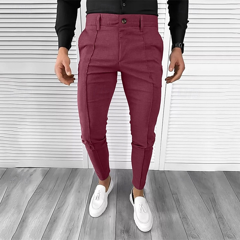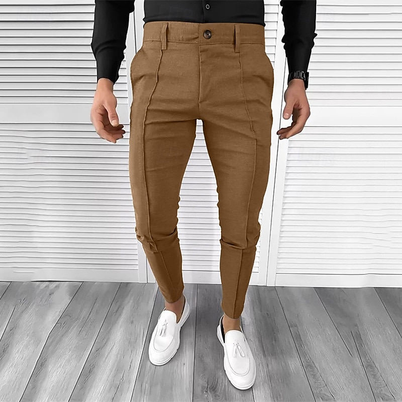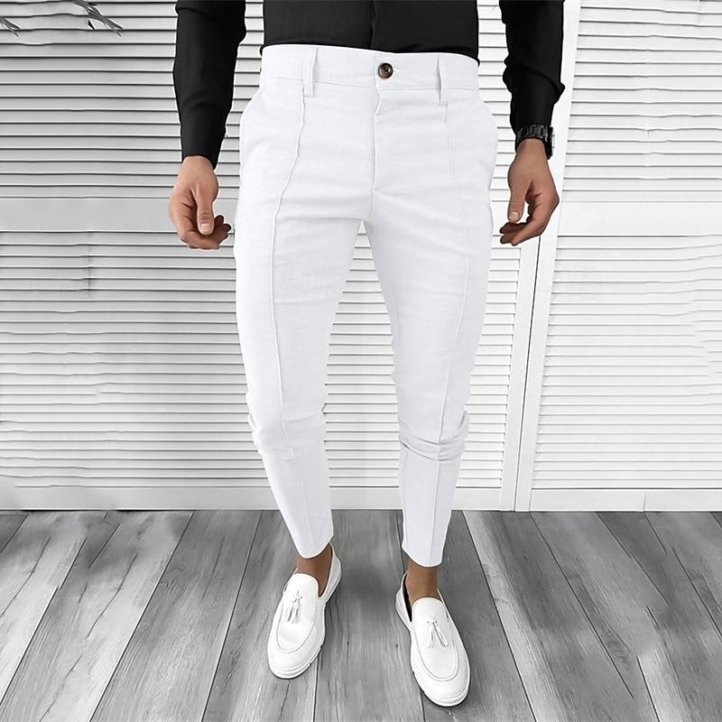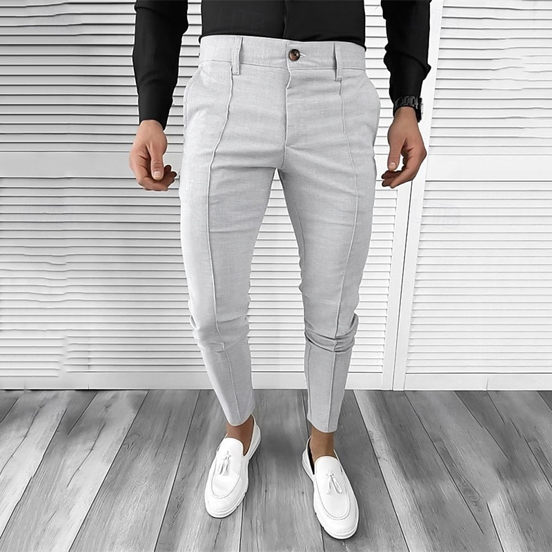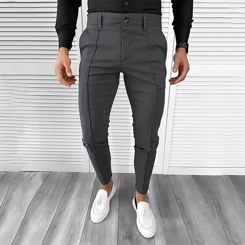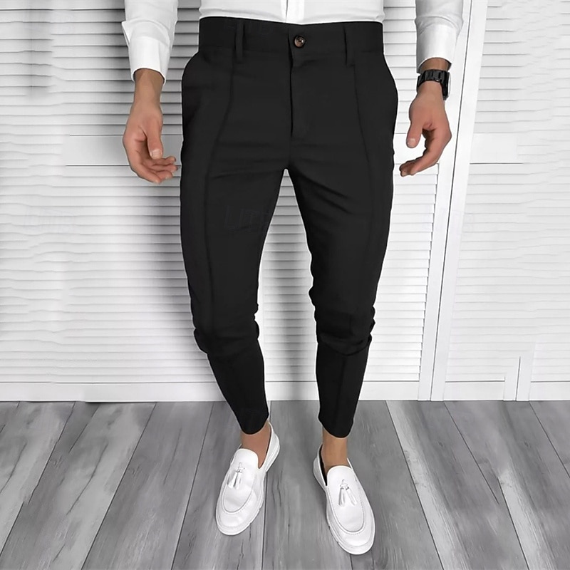 More information about Men's Dress Pants Tapered pants Trousers Chinos Buttons Pocket Plain Comfort Formal Party Work Fashion Classic Style Black White Micro-elastic