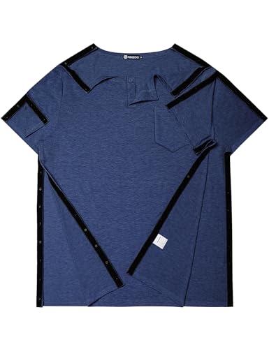 • Patient-Centric Design - Featuring a tear away short sleeve Henley design with a round neckline and three-button placket, this Henley shirt fastens strategically snaps on both sides, cuffs, and shoulders. Enables partial access for examinations while maintaining coverage, minimizing movement strain during dressing. Combines clinical functionality with Fashionable style to preserve patient dignity during recovery.