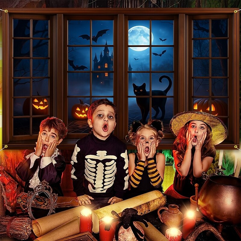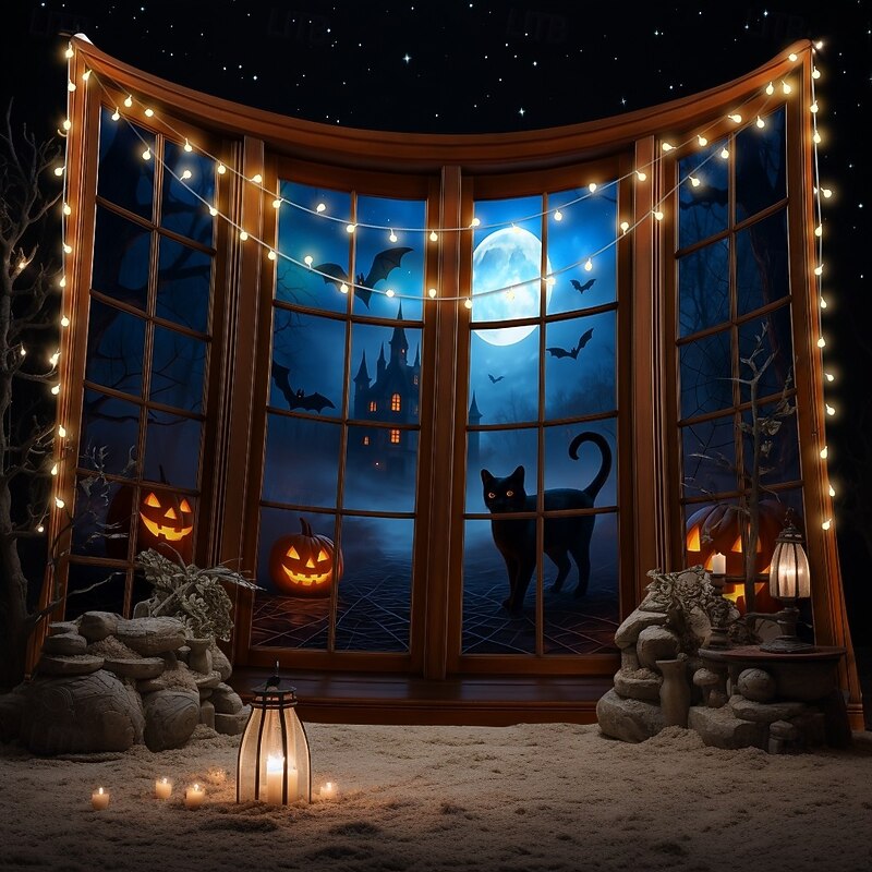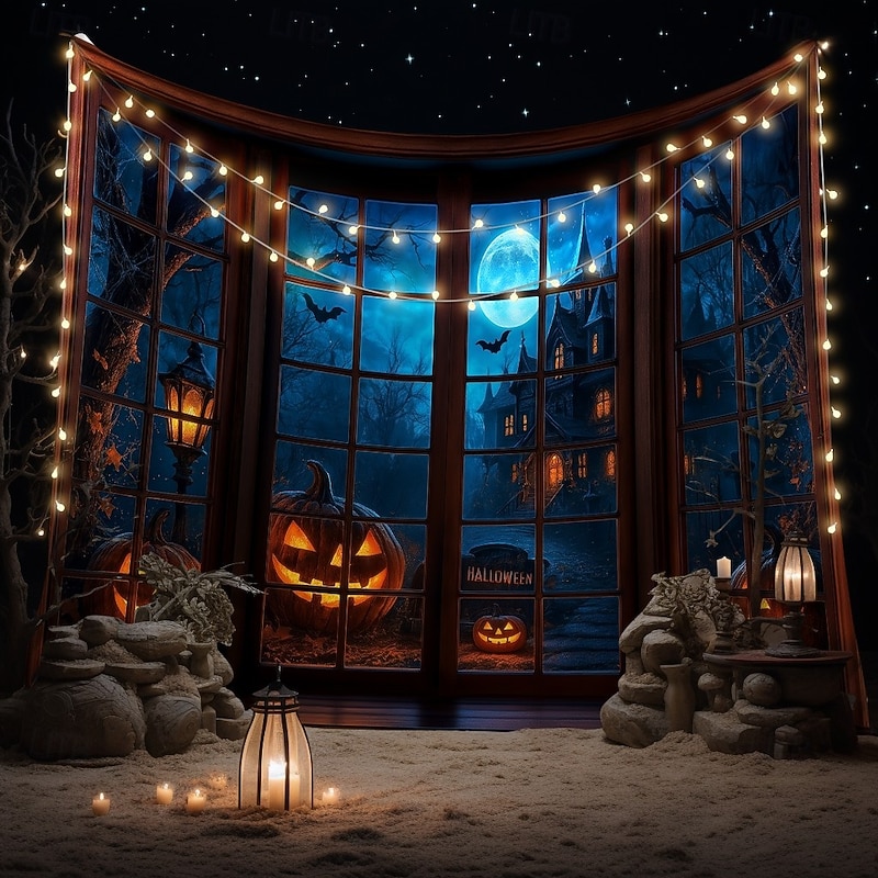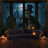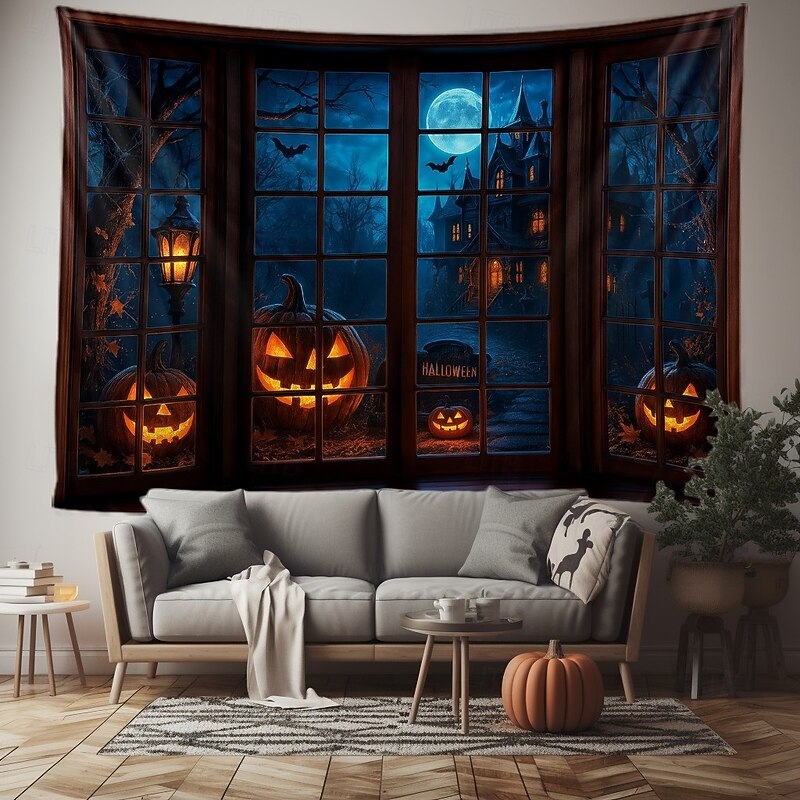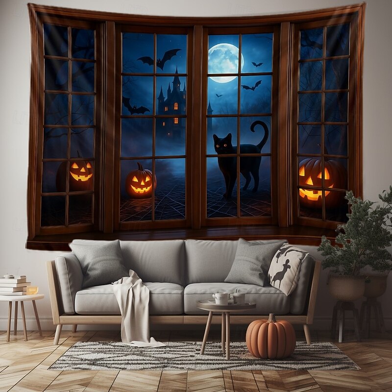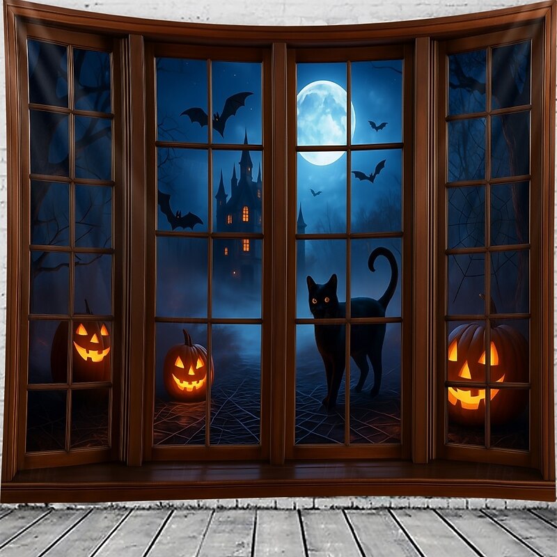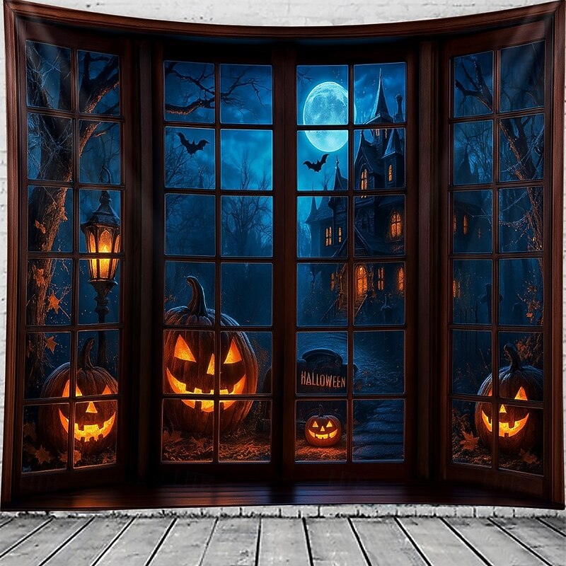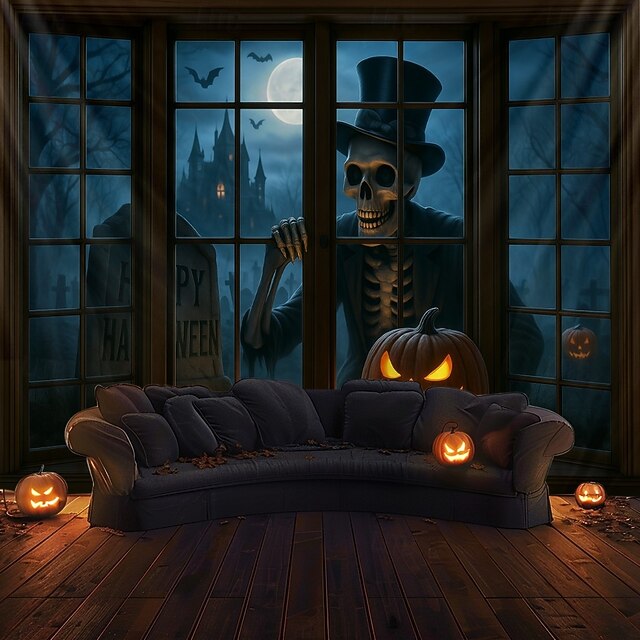 $13.99 - Halloween Window Scene Wall Tapestry Backdrop – Creepy Skeleton in Top Hat Outside Gothic Mansion Window with Full Moon, Pumpkins, and Bats, Spooky Indoor Party 2025 Halloween Decoration 2025. Shop for cheap Halloween Wall Tapestries online? Buy at lightinthebox.com on sale today!