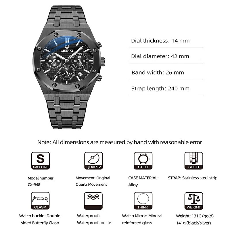 CHENXI Luxury Quartz Watch for Men Royal Stainless Steel Waterproof Chronograph Sport Business Casual Male Quartz Wristwatch Men Luminous Watches 11
