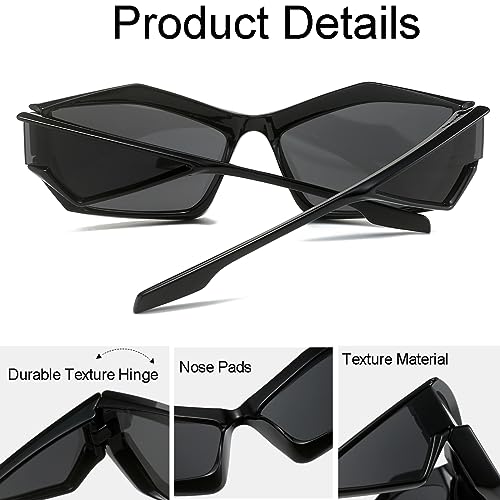 • ★ CLASSIC FUTURE TECHNOLOGY DESIGN STYLE - Crafted from high quality material, the unisex sunglasses are done up with sharp lines, dramatic angles and strong proportions for a bold look. The black sunglasses are complimented by smoke-colored lenses and are finished off with letter G designs on the front and temples. They are great for daily use (running, walking, driving, cycling, traveling, fishing, etc.), or used as party, cosplay costume accessories.