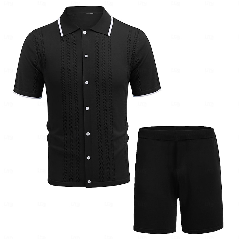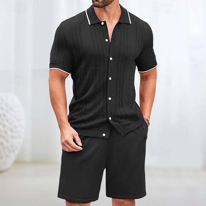 Male Polo Knit Polo Sweater Golf Shirt Short Sleeve Lapel Summer Solid / Plain Color Black Dark Navy khaki Top Tee for Men 1