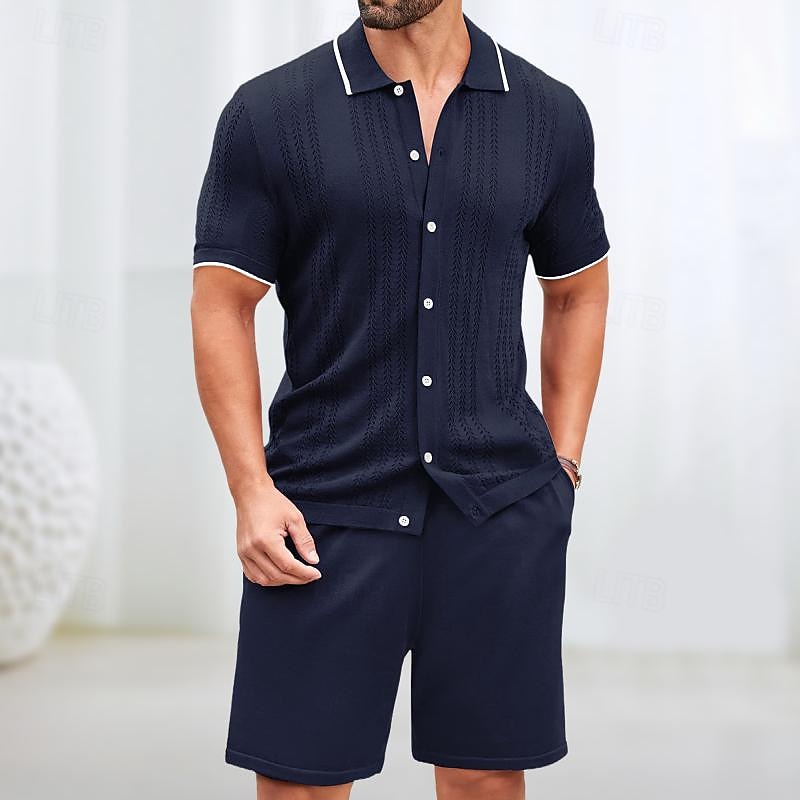 More information about Male Polo Knit Polo Sweater Golf Shirt Short Sleeve Lapel Summer Solid / Plain Color Black Dark Navy khaki Top Tee for Men