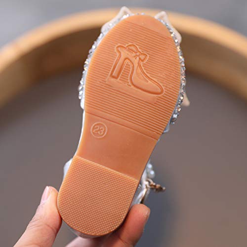 Baby Girl Solid Diamond Embellished Shoe Butterfly Hook and Loop Metal Sandals Princess Splicing Rhinestone Flats 7