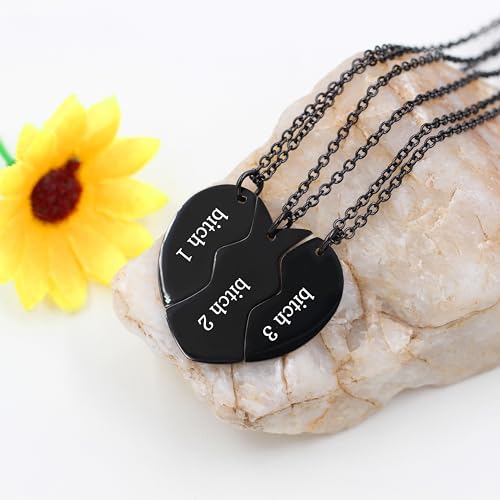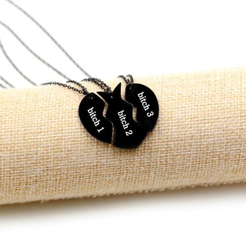 More information about Uloveido 3 Pieces BFF Necklace Black Stainless Steel Matching Puzzle Heart Shape Best Friends Necklaces for 3 Lady Friendship Birthday Gifts