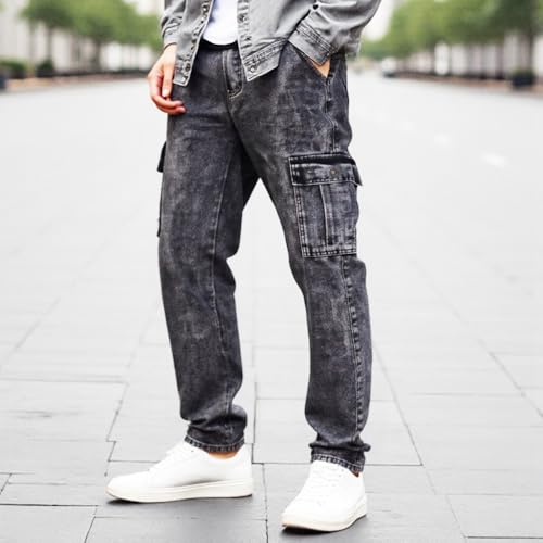 HOT ! Men’s Slim Fit Cargo Jeans – Straight Leg Streetwear Denim Pants with Flap Pockets, Multipocket Workwear Style