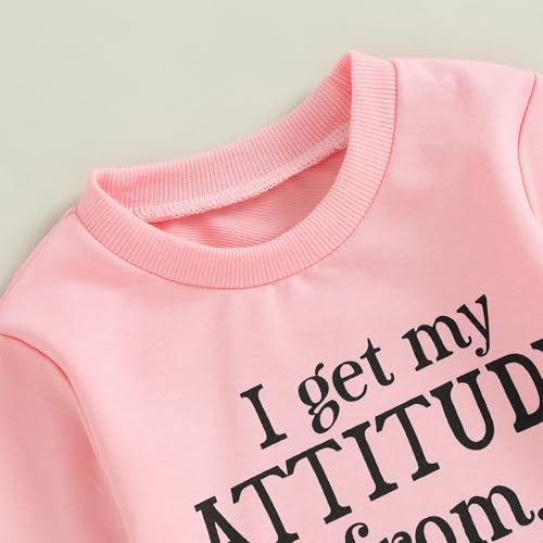 • 【Festival Baby Girl Clothes】:I Get My ATTITUDE from... well pretty much all of the women I am related to Lettered print adds a touch of fun to the closet. Long sleeve, crew neck, baby girl sweatshirt keeps your child warm in spring, fall and winter.