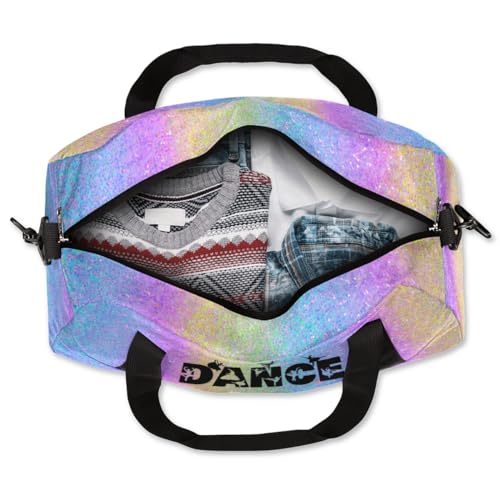 Custom Sports Dance Gym Bag, Personalized Dancing Ballet Bag Travel Overnight Small Duffel Bag Gymnastics Swimming Sleepover Overnight Sports Bag, Purple Blue Glitters Bling 6