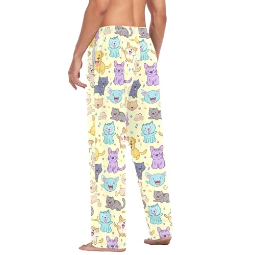 Men's Cute Cat Pajama Pants with Pockets - Straight Fit Cotton Sleep Bottoms for Lounge & Nightwear#718 2