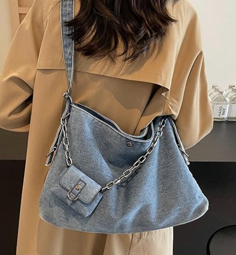 More information about Denim Tote Crossbody Bag for Women Fashion Hobo Tote Shoulder Bag Large Capacity Retro Purse for Daily Use