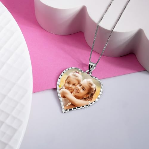 HOT ! PicturesOnGold.com Personalized Photo Engraved Heart Shaped Picture Necklace with Diamond Cut Edge in Silver, Gold, White Gold or Rose Gold - 1 Inch x 1 Inch