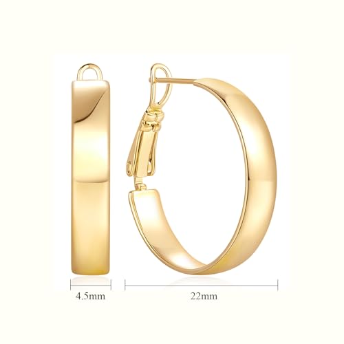 • [JUST THE RIGHT SIZE] The classic 22mm size is designed so that the gold chunky earrings for womens earrings won't be too big to steal the spotlight from your overall look or too small to be overlooked. The chunky gold hoop earrings are just the right size—not over-the-top but memorable at first glance
