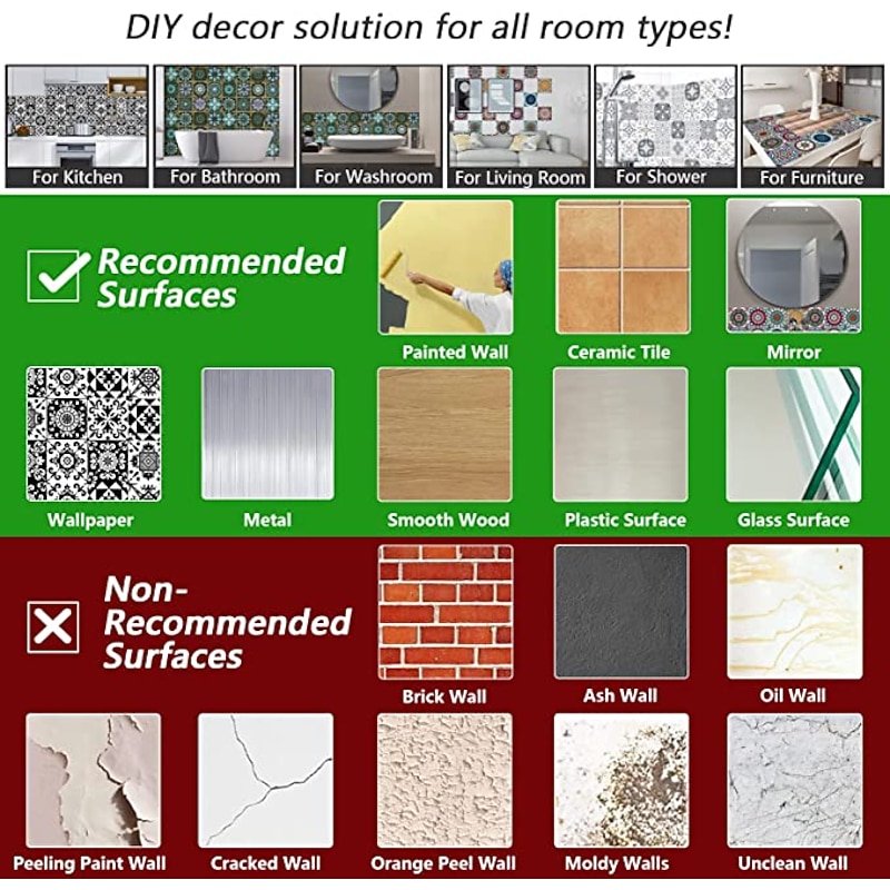 Highlights - Waterproof and oil-proof, ensuring long-lasting use. - Scratch-resistant and corrosion-resistant, meaning less wear and tear over time. - solid adhesion, keeping your decor securely in place. - Diverse patterns to choose from, allowing you to customize your space to your liking. - straightforward to install and clean, saving you time and effort. - Exquisite patterns and free DIY promote creativity and personalization. - Does not fade over time, maintaining the vibrancy of the applique. - Suitable for use in homes, apartments, offices, and other spaces. - Note: Ensure that the surface is clean and flat before application and avoid using on peeling paint, holes, or uneven surfaces.