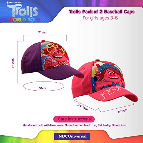 • OFFICIALLY LICENSED DREAMWORKS: Girls' 2 Pack Trolls Poppy Baseball Cap; We tell stories about dreams, and the journeys our unconventional heroes take to make them come true