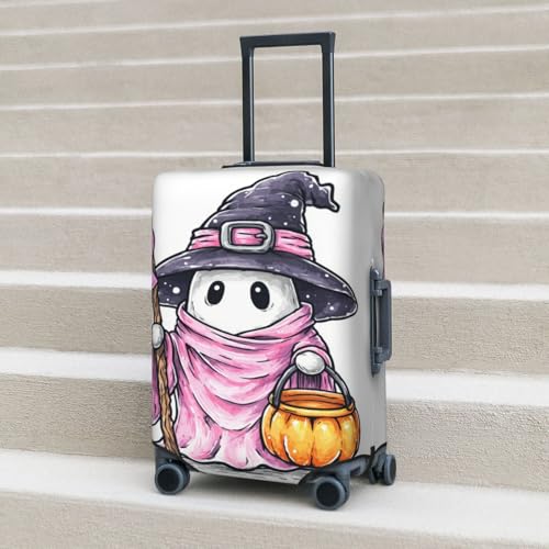 HOT ! Cute Ghost Witch Holding A Bucket Elastic Travel Luggage Covers Dustproof Scratch-Resistant Suitcase Protector Fit 22-24 Inch