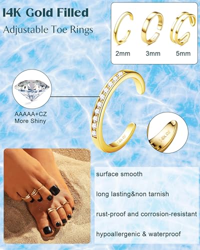• 14K Gold Filled Toe Rings: These trendy toe rings for women feature upgraded 14K gold-filled craftsmanship.Non-tarnish, resist oxidation, rust, and fading, maintaining their long-lasting brilliance.The perfect golden hue for toe rings—never brassy or overly yellow. Ideal for daily wear, beach vacations, or special occasions