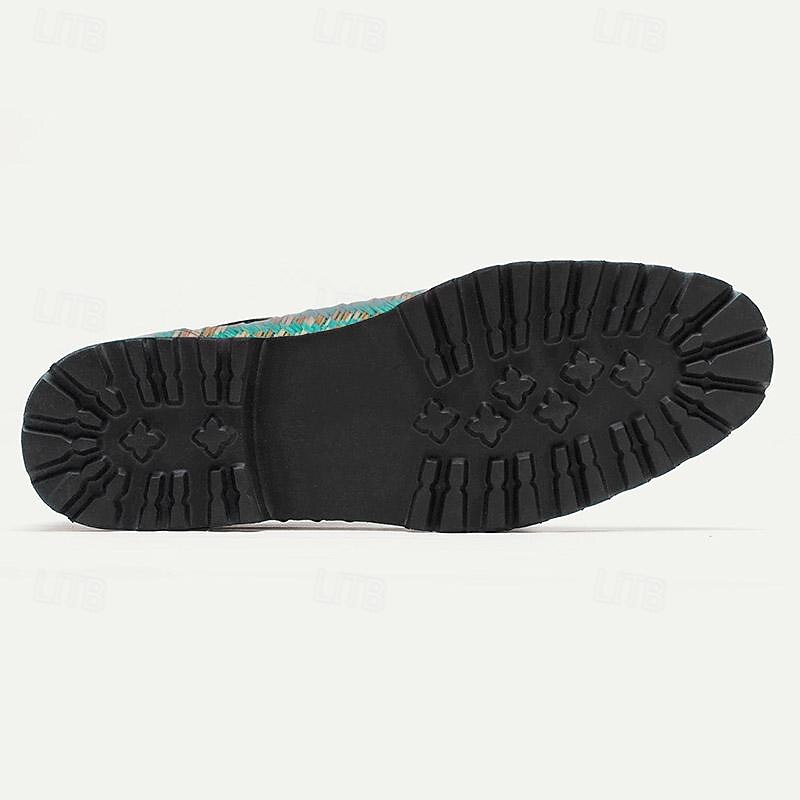 Highlights [Fabric] : Crafted with a luxurious blend of Italian full-grain cowhide leather and durable nylon woven fabric, these men’s sneakers offer a high-quality, polished appearance. The combination ensures a comfortable yet stylish fit, making them perfect for everyday wear. [Silhouette] : Featuring a round toe design and a sleek lace-up style, these shoes provide a modern and adjustable fit that suits a variety of foot shapes. The sturdy rubber outsole ensures a slip-resistant experience, ideal for all-day use. [Design Highlights] : The sneakers showcase a sophisticated woven pattern in shades of teal and beige on the side panel, adding a unique and fashionable touch. The glossy leather upper complements this intricate detailing, presenting a contemporary yet timeless look. [Occasions] : Perfect for both casual and semi-formal occasions, these sneakers effortlessly combine comfort with modern fashion. Whether at a laid-back weekend outing or a smart-casual event, they elevate your style with ease. [Size Range] : Available in a range of sizes including US8 to US13, these sneakers accommodate various foot sizes while maintaining a comfortable and supportive fit for everyone.