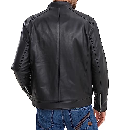 Leather Jacket Men,Lambskin Motorcycle Jacket, Black, Quilted Shoulders, Full Zip Front with Multiple Pockets 3