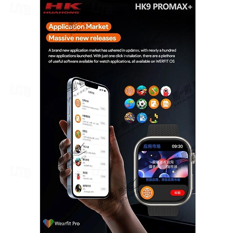 HK9 Pro Max Smart Watch with 2 Watch Bands 1.32 inch Smartwatch Fitness Running Bluetooth ECG+PPG Pedometer Call Reminder Android iOS Long Standby Hands-Free Calls Step Tracker IP68 22mm Watch Case 11