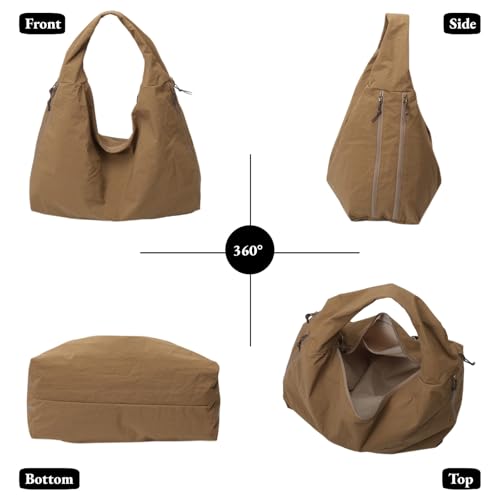 Origin: ImportedClosure type: ZipperLining: PolyesterSpacious Slouchy Tote Bag: Designed with a relaxed, slouchy silhouette, this large shoulder bag blends effortless style with everyday functionality. Measuring 18.9 × 6.69 × 12.6 (48 × 19 × 34 cm), it easily fits A4 documents, a 15.6-inch laptop, and more—Ideal for commuting, travel, errands, or casual outings.Multiple Pockets for Organized Storage: Stay organized on the go with a smart pocket layout, one roomy main zippered compartment, two side zip pockets, and one rear zip pocket. Easily sort and access your phone, wallet, iPad, keys, umbrella, makeup, power bank, and other daily essentials without the hassle of digging around.Lightweight & Premium Nylon Material— Foldable for Travel: Crafted from premium nylon, this hobo bags for women is wear-resistant, tear-resistant, and incredibly lightweight. It folds easily for compact storage and pops back into shape thanks to its wrinkle-resistant fabric—making it a practical choice for daily use or travel.Minimalist Solid Color — Easy to Style: With its clean, solid-color design and slouchy, laid-back shape, this crescent handbag effortlessly complements casual, work, or sporty outfits. Transition seamlessly from day to night with a sophisticated, go-with-anything accessory that fits into any wardrobe.Ideal Gift with Thoughtful Service: Whether it’s a birthday, anniversary, holiday, or just because, this fashionable oversized nylon shoulder purse makes a thoughtful gift for moms, girlfriends, friends—or yourself. We’re committed to excellent customer service—if you have any questions, our support team is always here to help. Perfect for everyday use. first-class materials and excellent craftsmanship ensure long-lasting durability.