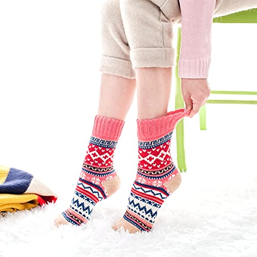 JUNAN 5Pairs Ladies thermal Winter socks, Womens Thick Knitting Warm & comfy Wool Crew Vintage Style Sock (G-multicor) 5