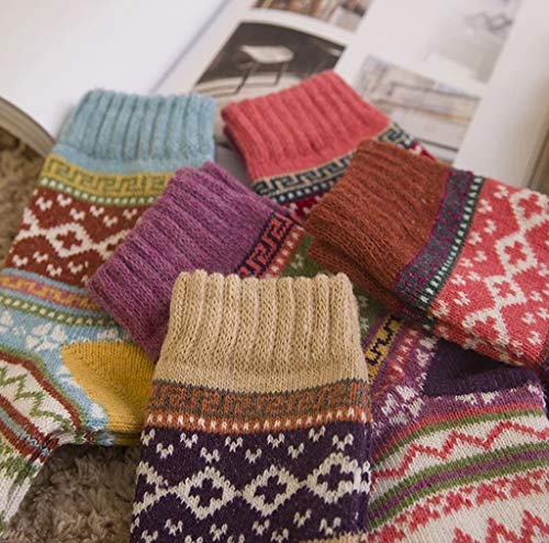 JUNAN 5Pairs Ladies thermal Winter socks, Womens Thick Knitting Warm & comfy Wool Crew Vintage Style Sock (G-multicor) 6
