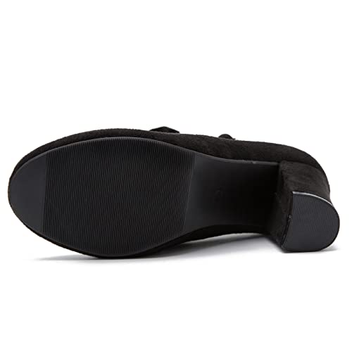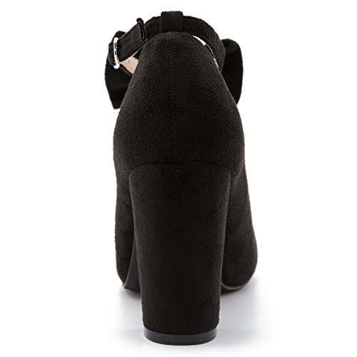 • Comfort Bowknot Dress Pumps Closed Round Toe featuring an in-step strap to keep your feet secure for every walk, Buckle closure, with a cushioned insole and a sturdy block heel to support every move you make.