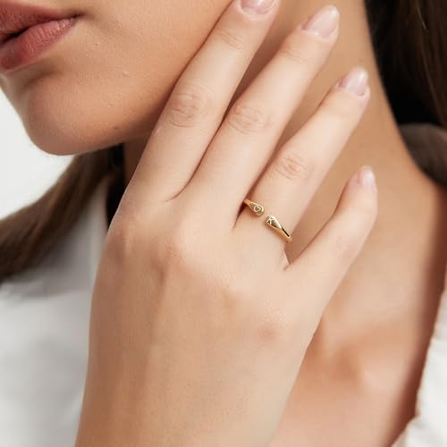 14k Gold Filled Hand Carving Initial Rings for Women Non Tarnish Wedding Heart Shaped Bands for Women 5
