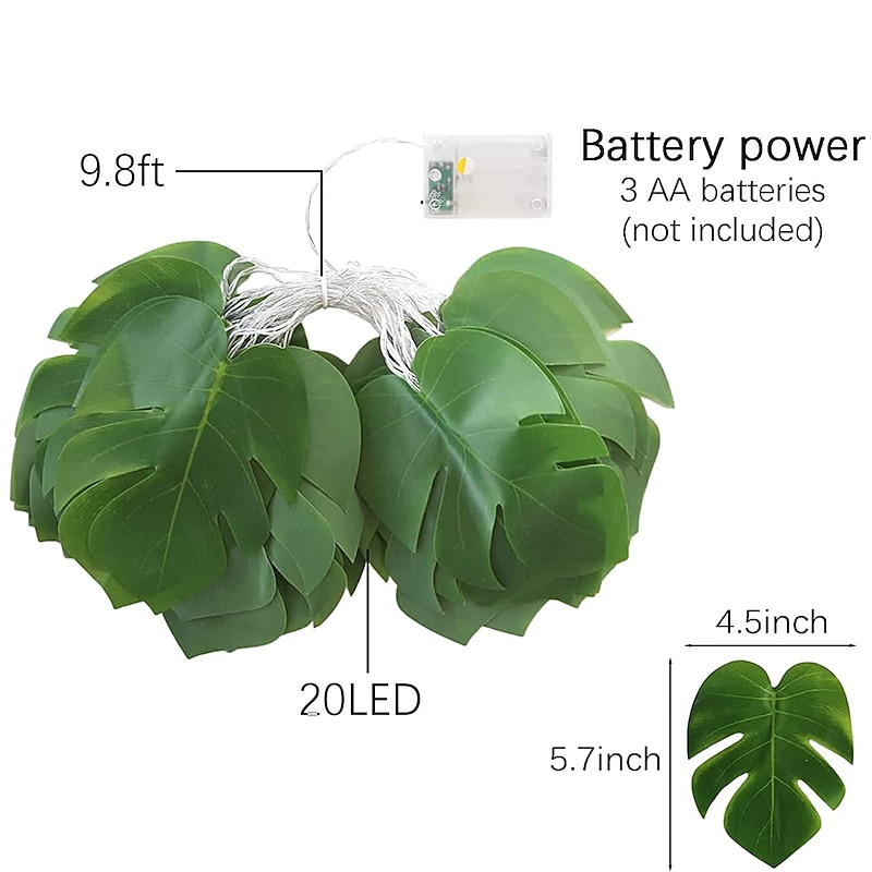 3m 20LEDs Palm Leaf Hawaiian Tropical Party Decor Lights for Home Garden Outdoor Indoor Jungle Seaside Outdoor Camping Party Decorations 12