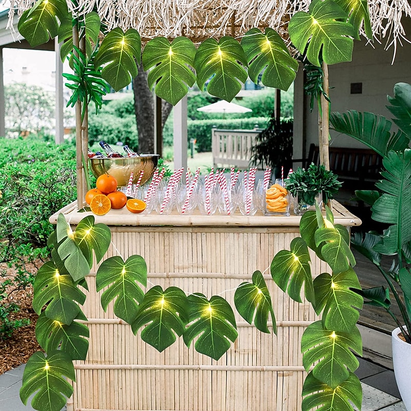 3m 20LEDs Palm Leaf Hawaiian Tropical Party Decor Lights for Home Garden Outdoor Indoor Jungle Seaside Outdoor Camping Party Decorations 14