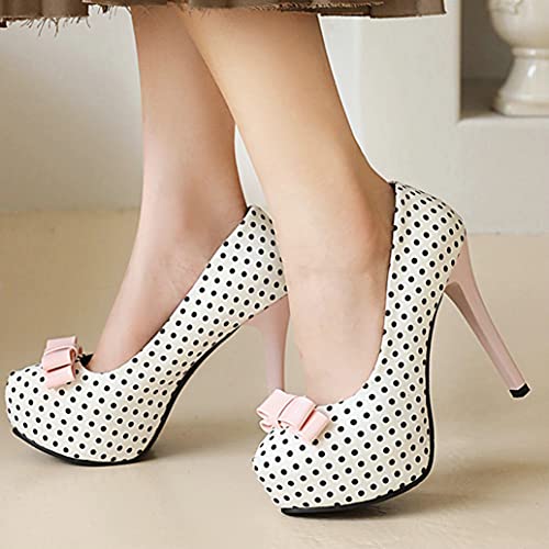 Meefit Women Polka Dot Pumps Stiletto High Heels Platform Pumps with Bow Tie 6