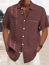 More information about Men's Leaf Ethnic Summer Shirt Casual Shirt Button Up Shirt Short Sleeve Fashion Comfortable Vacation Daily Holiday Summer Lapel Print Front Pocket Red Blue Green Dark Gray