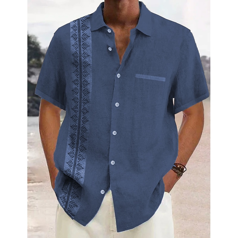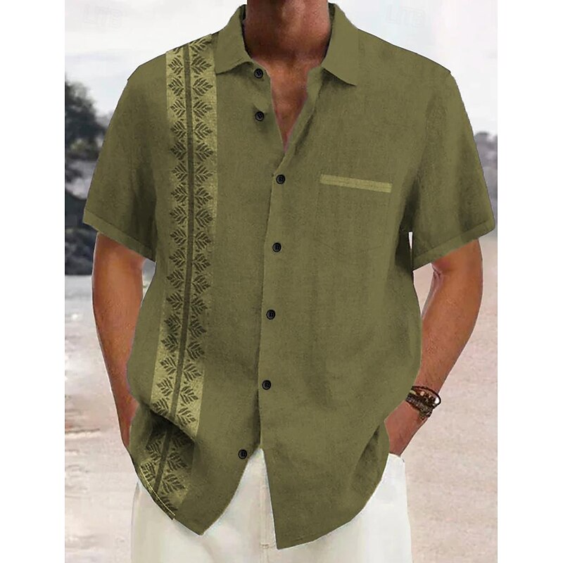 Men's Leaf Ethnic Summer Shirt Casual Shirt Button Up Shirt Short Sleeve Fashion Comfortable Vacation Daily Holiday Summer Lapel Print Front Pocket Red Blue Green Dark Gray 25