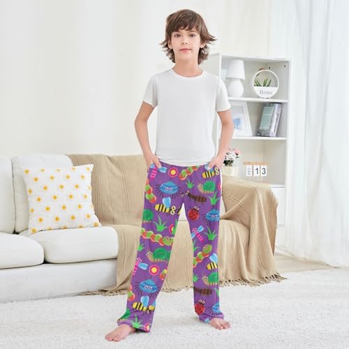 Caterpillar Snail Bee Boys Long Pants Soft Trousers Elastic Waist Kids Lounge Bottoms with Pockets S-XL 4