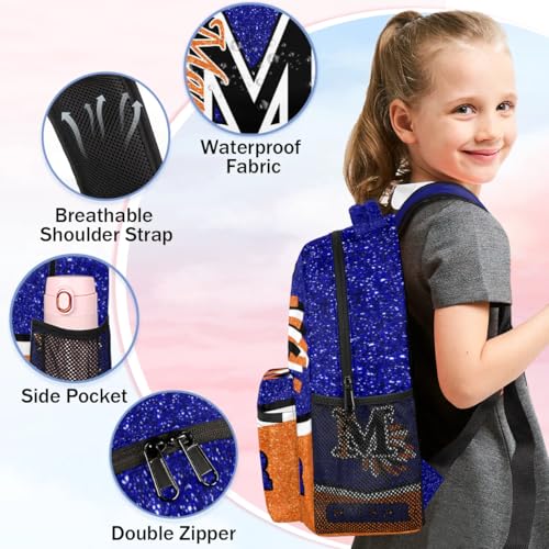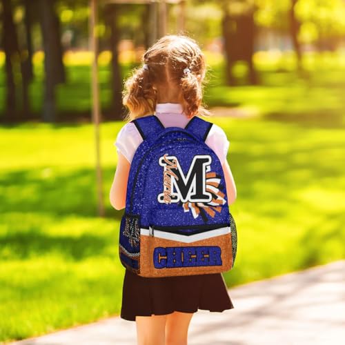 TropicalLife Personalized Cheer Backpack for Cheerleaders, Custom Name Cheerleader Shoulder Bag Cheerleading Gifts for Women Teams Blue Orange Glitter