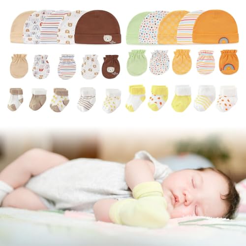 15 Pieces Newborn Cap Mitten Sock, Newborn Hats, Baby Mittens Gloves Infant Socks for 0-6 Months Unisex Baby Boys Girls, Type 2 6
