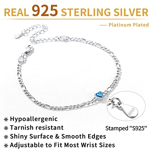 ChicSilver 925 Sterling Silver Heart/Round Birthstone Figaro Chain Bracelet for Women Mothers Day Birthday Jewelry Gifts (with Gift Box) 5