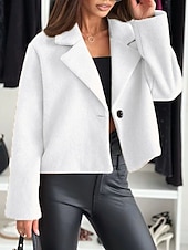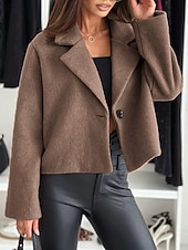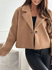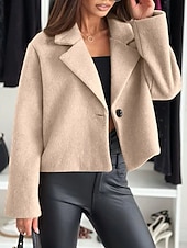 More information about Women's Casual Jacket Warm Comfortable Buttons Fashion Outdoor Plain Going out Weekend Single Breasted Regular Lapel Regular Fit Long Sleeve Outerwear Black White Khaki Fall Winter