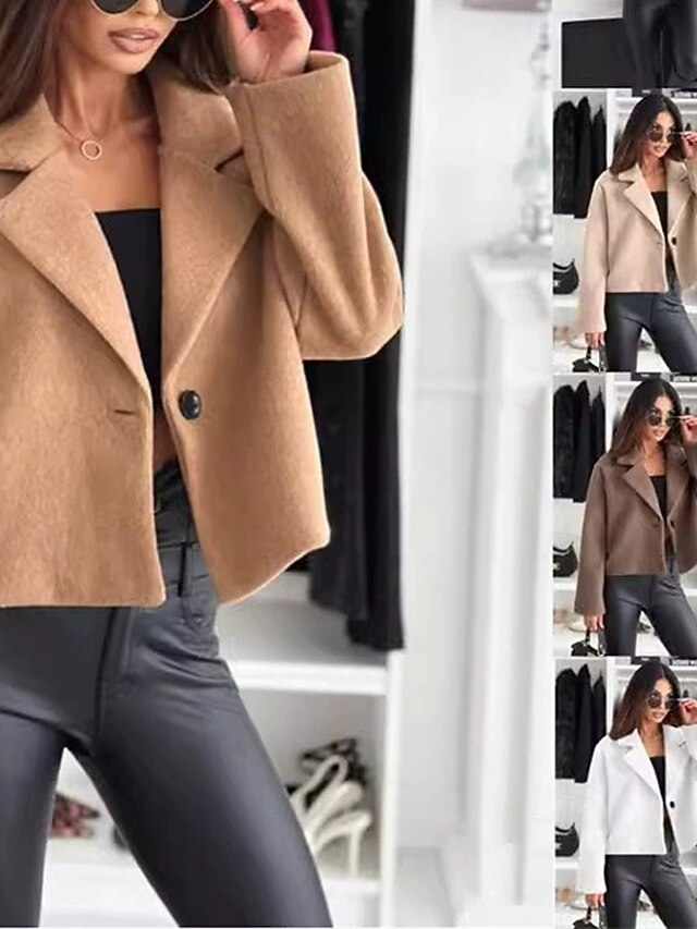 Women's Casual Jacket Warm Comfortable Buttons Fashion Outdoor Plain Going out Weekend Single Breasted Regular Lapel Regular Fit Long Sleeve Outerwear Black White Khaki Fall Winter 13